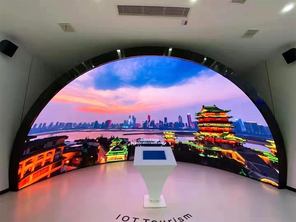 XOBLED displays go beyond flat, rectangular screens to transform spaces into dynamic, architectural statements. This museum installation exemplifies our approach: a custom-engineered circular curved display that immerses visitors in a